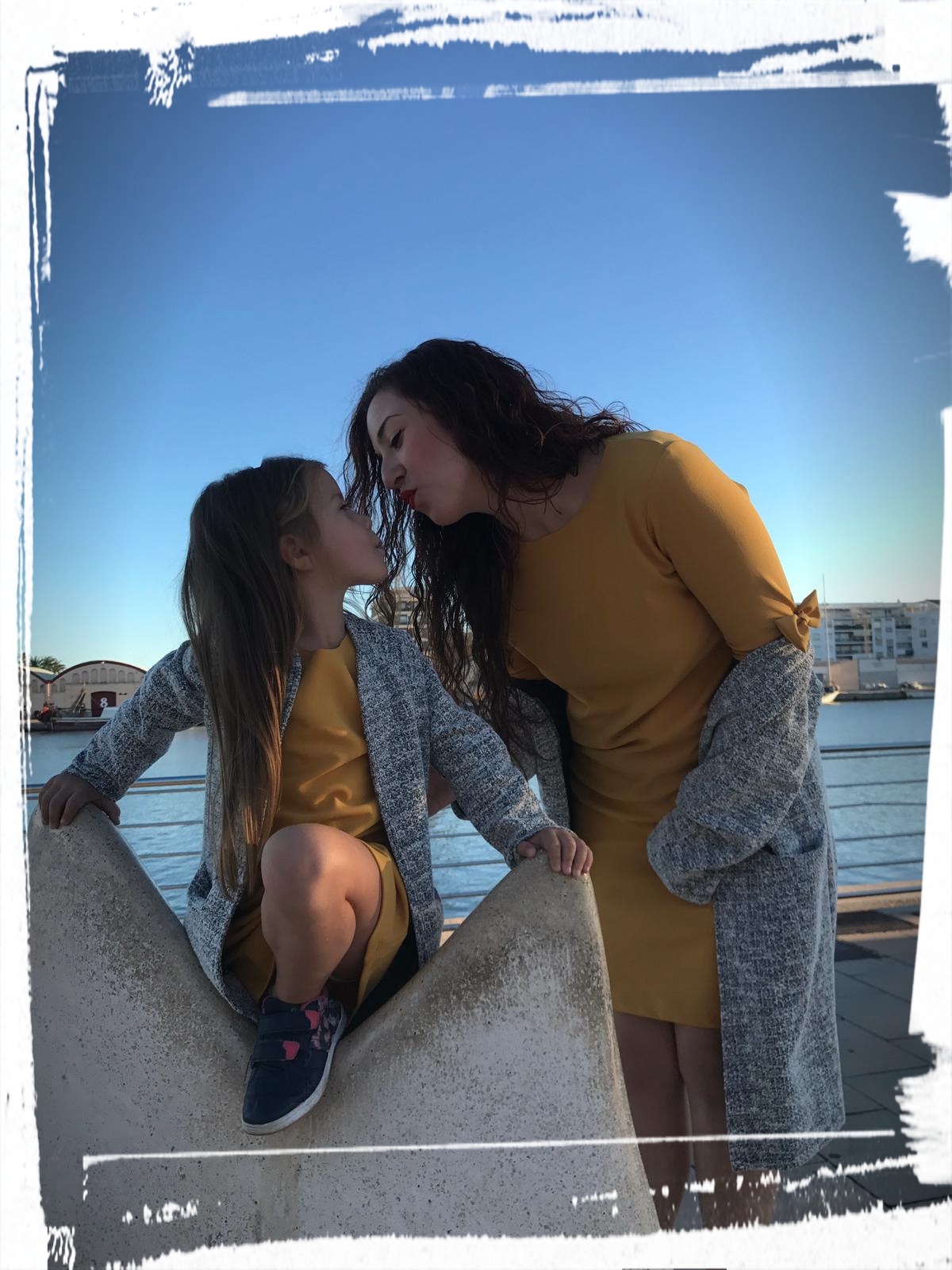 MARAVILLOSO VESTIDO COLOR MOSTAZA MAMI Y NIÑA IGUAL