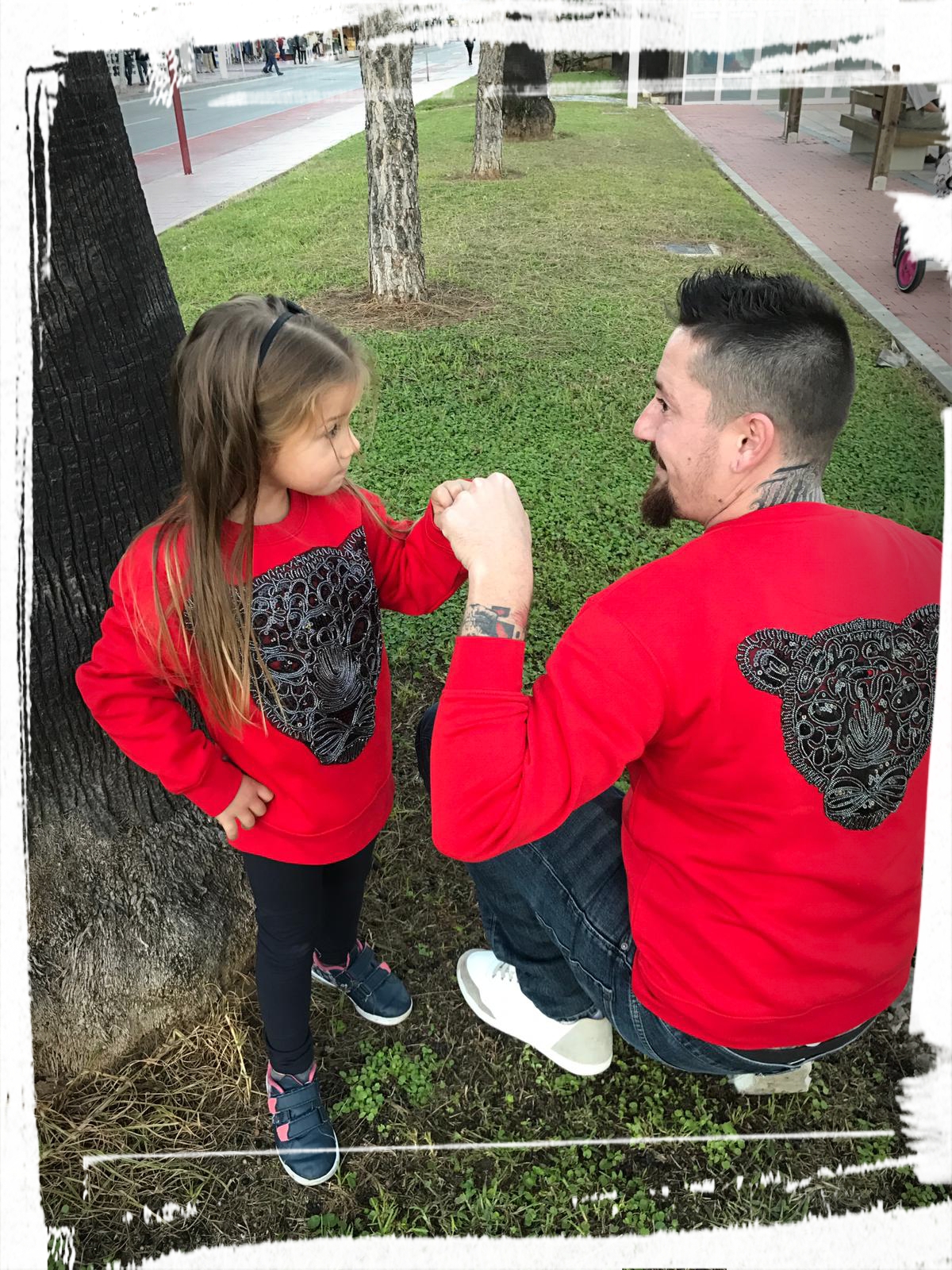 SUDADERA ROJA LEOPARDO NEGRO PARA TODA LA FAMILIA