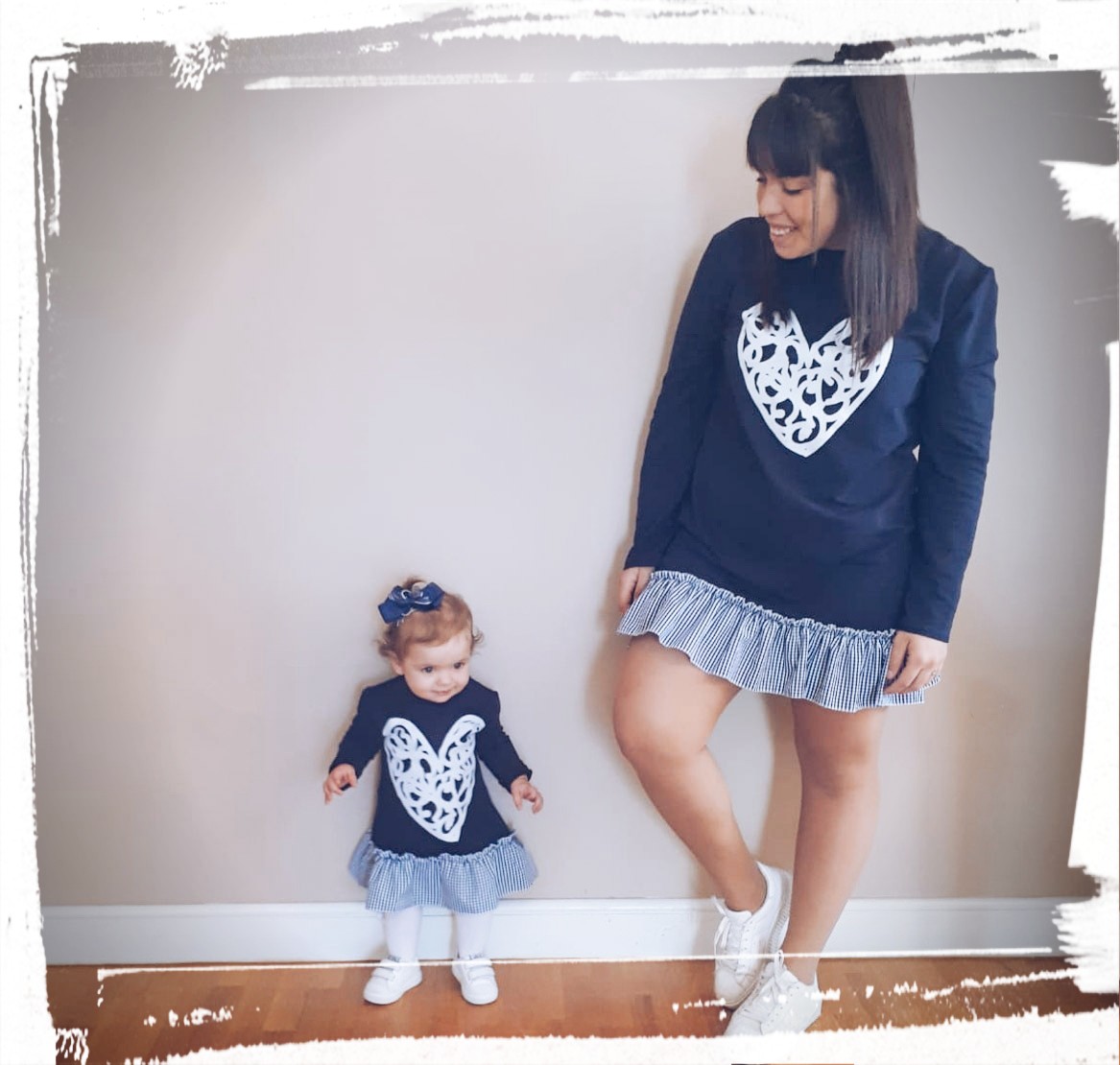 VESTIDO CORAZÓN CON DETALLE A CUADRITOS MAMI Y NIÑA