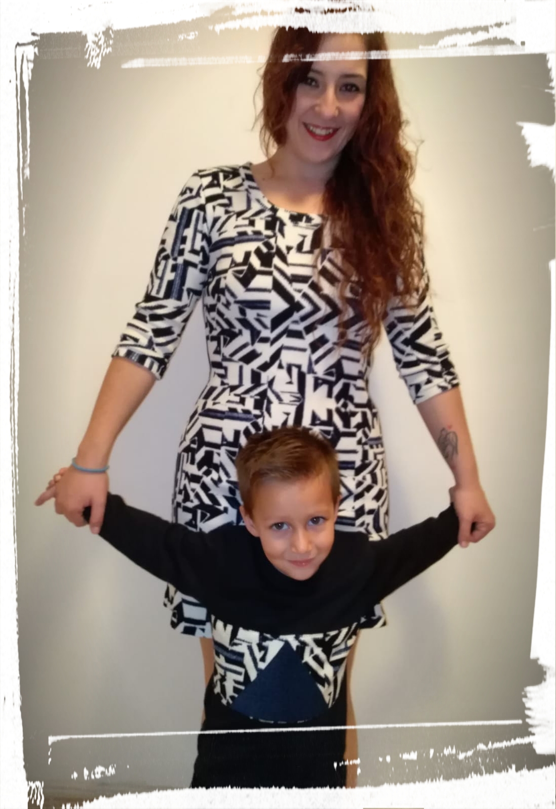 Vestido geométrico y camisetas manga larga para toda la faamili